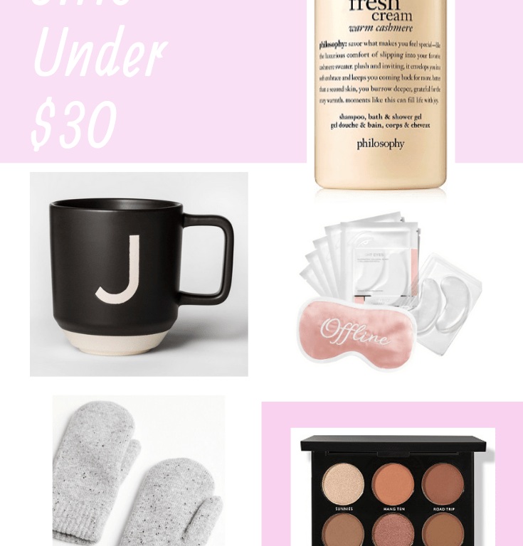 I guess I will keep going with the gift guides! Here are gifts that are $30 or less – perfect for your girlfriends, co-workers, significant others siblings, etc. It’s so easy to spend $20 here, $50 here, another $45 here during the holidays, so try to set some sort of budget before you start holiday shopping and really attempt to stick to it. Setting a price limit for each person will really keep you on track and you won’t be left with regret after the holiday season. Trust me, even $5 over for each person here and there start to add up, so set a budget and stick to it! Everything is linked below! Below are some great gift options that will make your friends, family & wallet happy (that was really clever, I’m proud of myself).