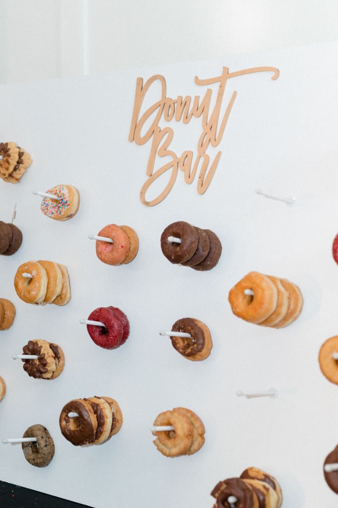 6. Champagne Toast vs. Cake Cutting and donuts for dessert – The Champagne toast was so awesome, it was just very us and donuts for dessert because no one really likes wedding cake. Also shoutout to my amazing FIL who hand made the donut wall – ily Ricky! 🙂