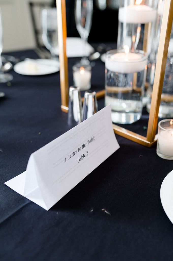 8. Letters to the table – About a week before the wedding, once our seating chart was done, we typed out letters to each table. Each letter started off with the same welcome/thank you note and then we went into each couple and wrote about 2-3 sentences either about a memory or something special to that couple. It was a way for us to personally thank each person for being there and it really did not take that long. I think people forget the time/money that guests give to attend your day so a small thank you goes a long way. 10/10 would recommend.
